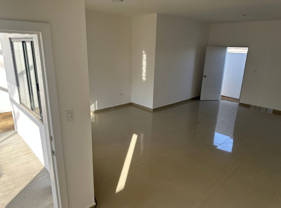 Loseta de porcelanato y paredes blancas